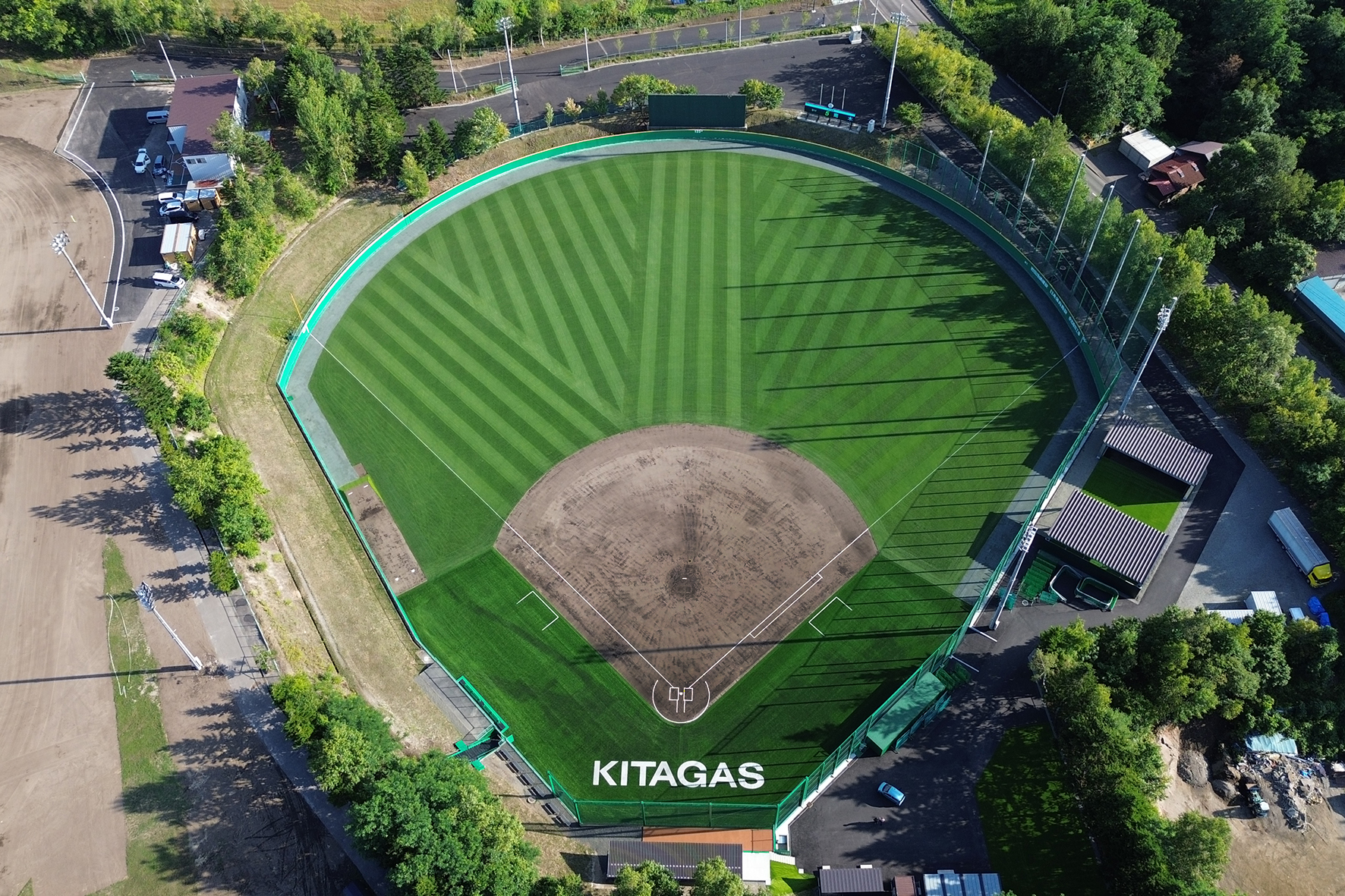 硬式野球場及び運動場などの整備工事を担当した『北ガス てん太の森公園』の整備工事が完成しました。硬式野球場は、7月開催の「都市対抗野球大会」で北海道勢として100勝目を達成した北海道ガス硬式野球部の練習施設です。