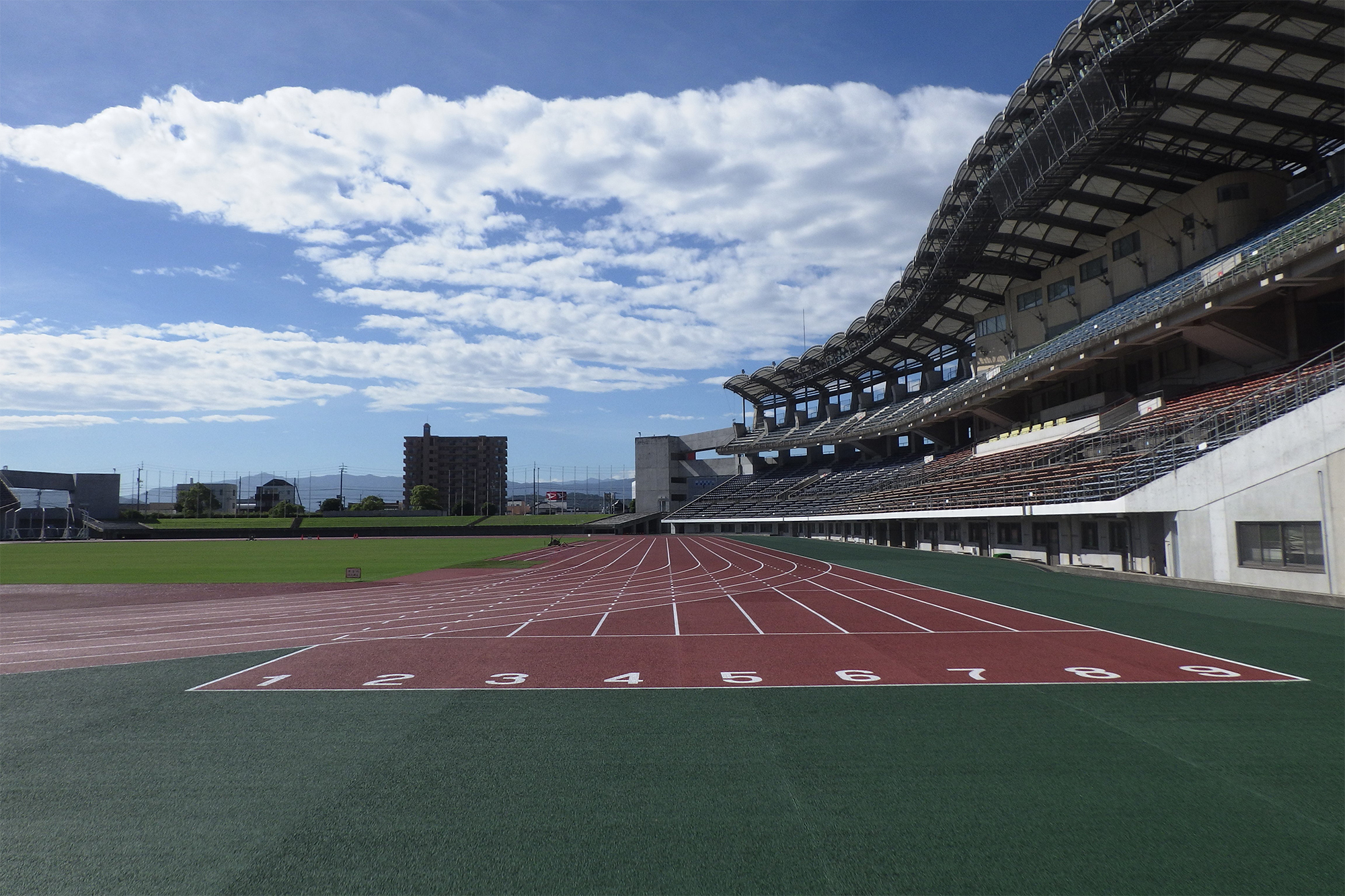 香川県立丸亀競技場(Pikaraスタジアム)は、400mトラック9レーンの日本陸連第1種公認競技場です。今回、新たにWA(World Athletics、世界陸連)クラス2認証を取得しました。