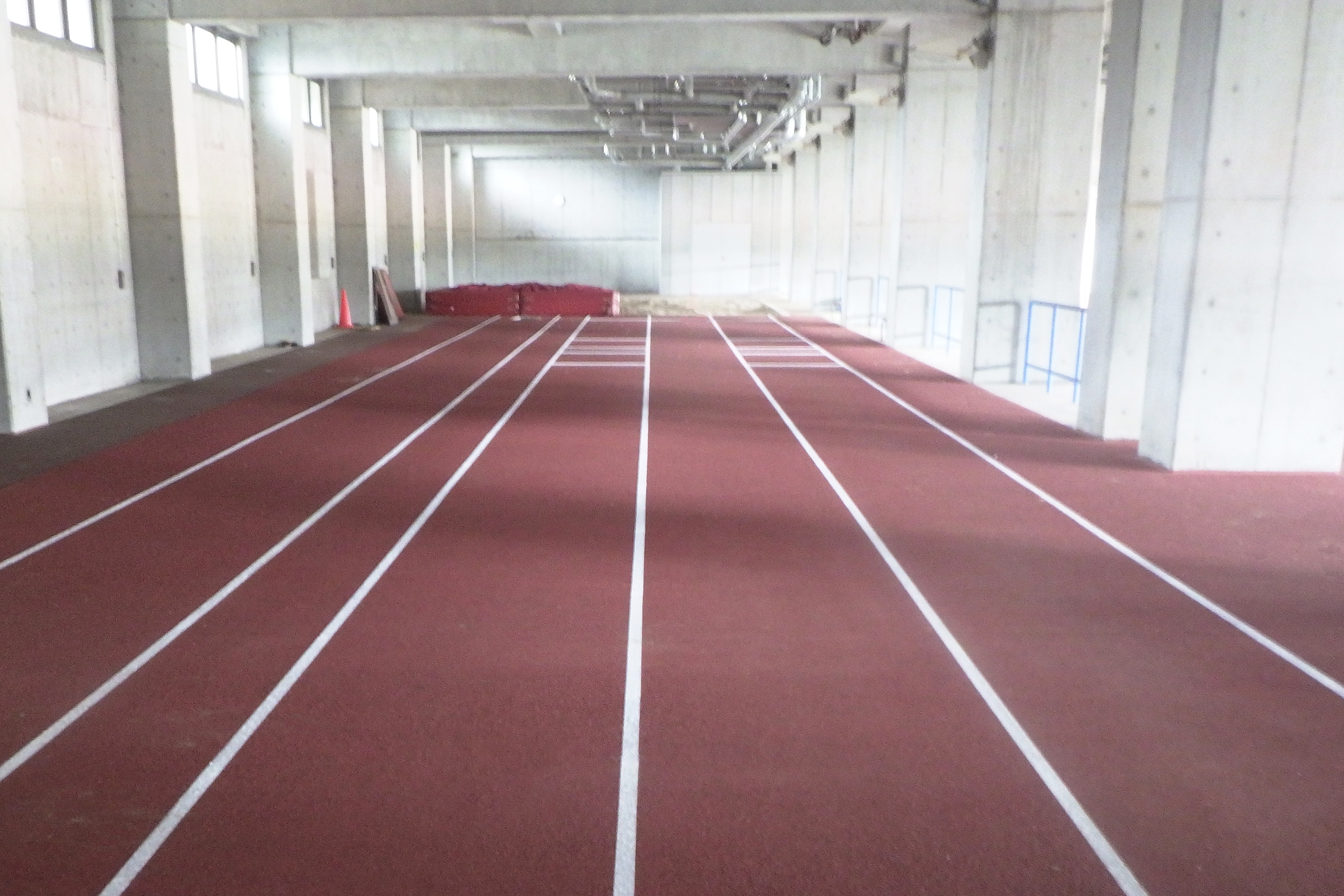 室内練習場はウレタン舗装の摩耗した箇所を切削・オーバーレイで改修し、汚れている箇所は洗浄を行いました。