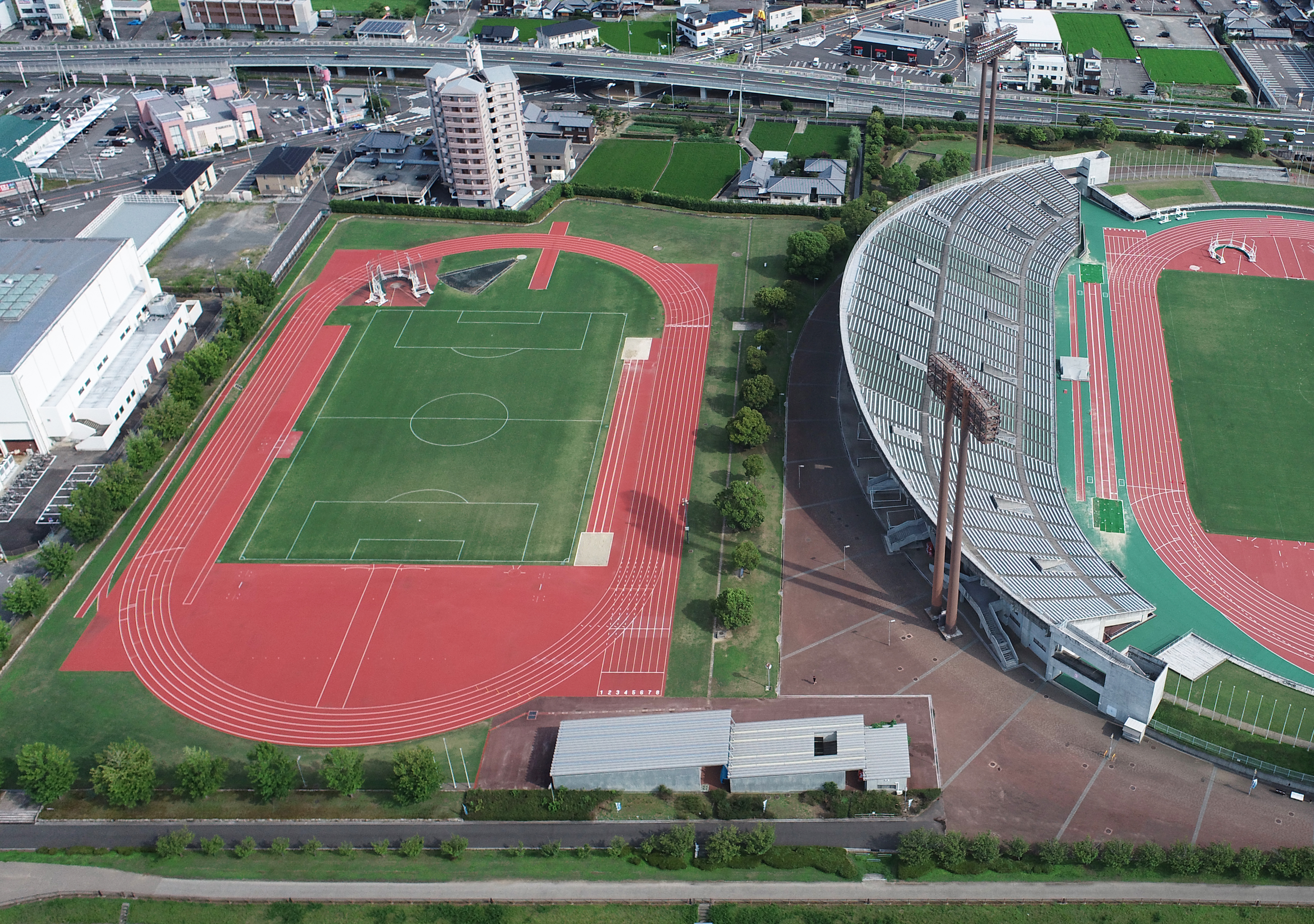 環境対応型ウレタン舗装材を導入した香川県立丸亀競技場の改修工事が完成しました。