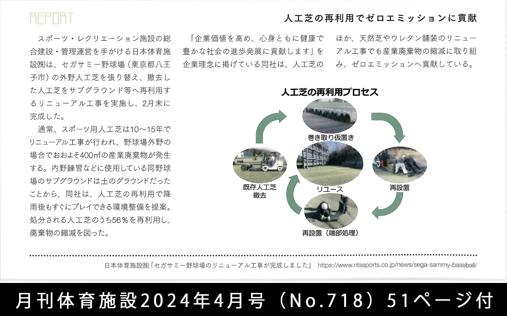 人工芝の再利用で産業廃棄物を縮減