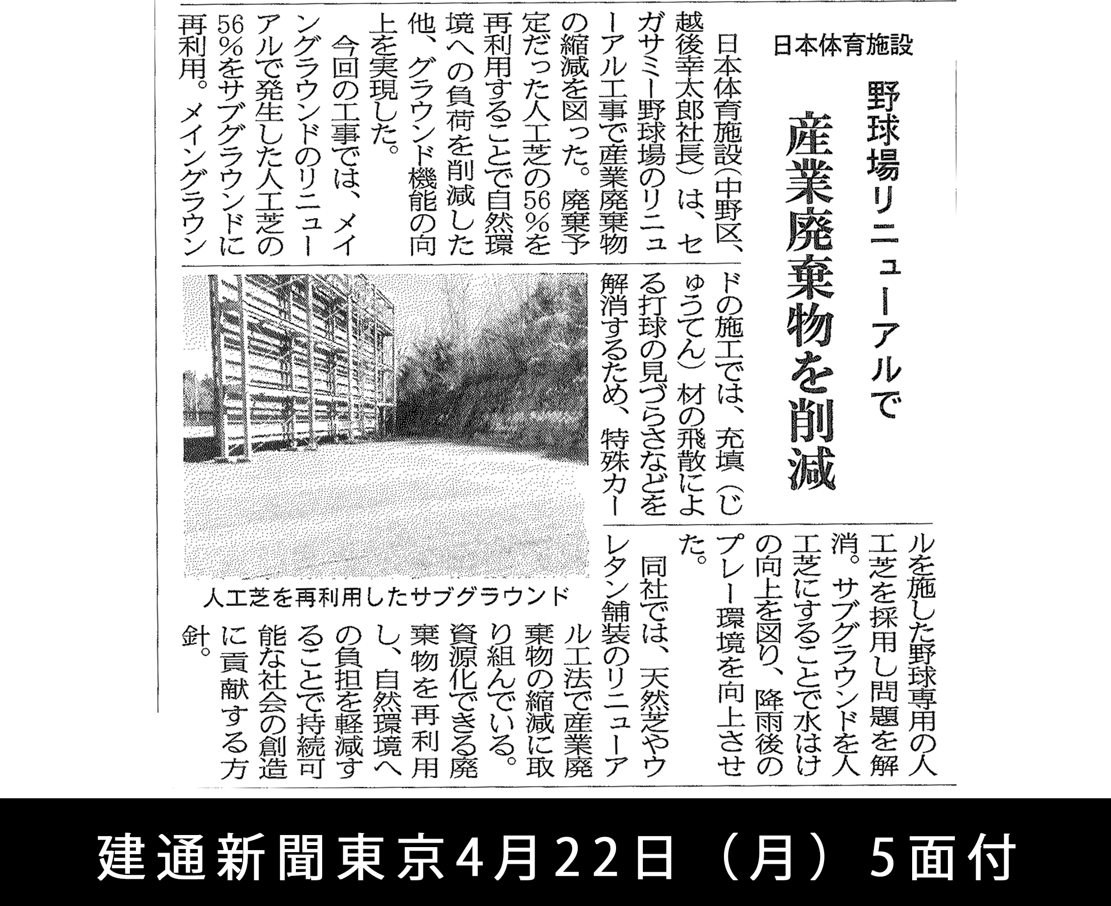 日刊建設工業新聞、建通新聞東京、月刊体育施設他に当社が施工を担当した「セガサミー野球場のリニューアル工事」の記事が掲載されました。