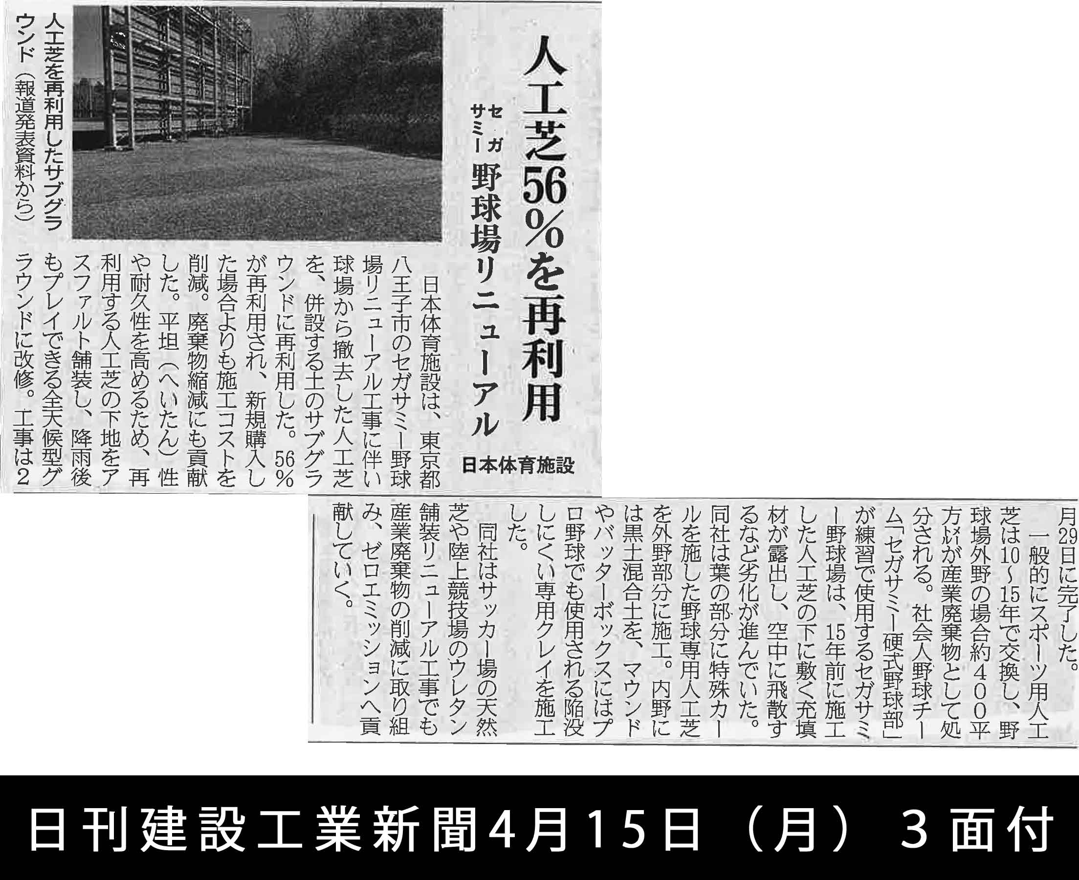 当社が施工を担当した「セガサミー野球場のリニューアル工事」の記事が日刊建設工業新聞、建通新聞東京、月刊体育施設で掲載されました。
