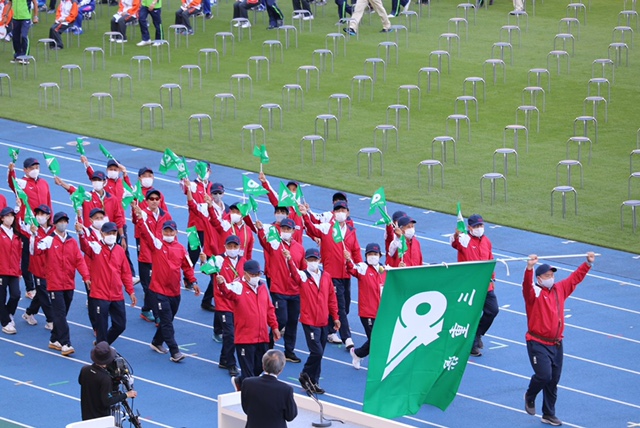 3年ぶりに開催される国民体育大会の総合開会式が行われ、当社所属の村上輝選手が三重県の旗手を務めました。村上選手の様子とインタビューが三重テレビ放送でも放映されました。