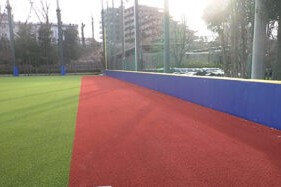 人工芝は、東京六大学野球の試合が行われる明治神宮野球場と同じものが使用され、外周の防護マットも明治神宮野球場をイメージしてブルーに改修しました。