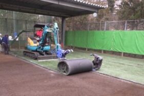 野球場から投手練習場へ人工芝を移設する再利用工法に取り組みました