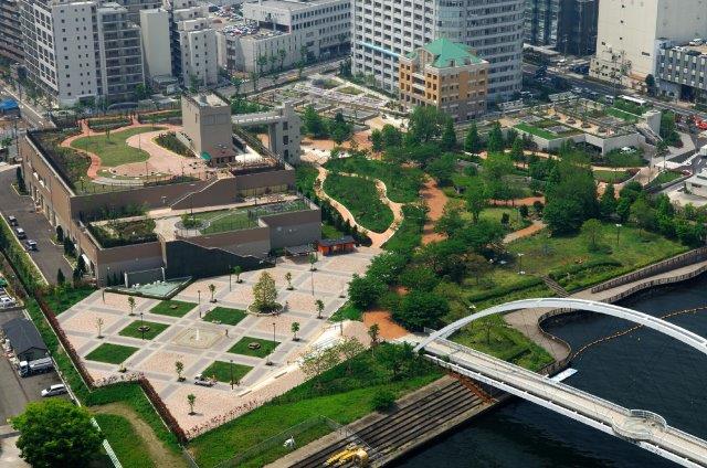 公園西側には災害時に活用されるヘリポートや災害用テントが設置できる複合遊具など、防災機能を備えたエリアもあります。