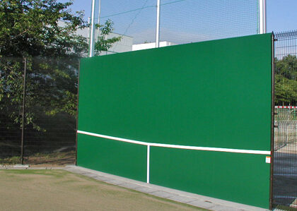 相手が居なくても練習できる壁うちボードは、学校グラウンドや公園等で利用されています。シンプルですが、人気のある設備です。