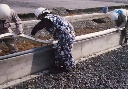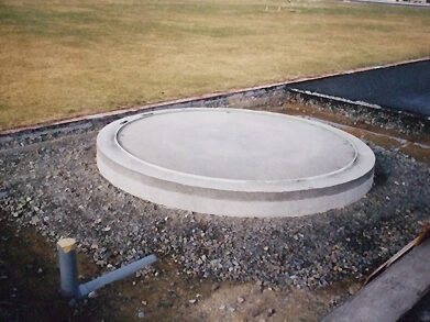 投てき競技で使用するサークル。サークルの表面は、コンクリートの刷毛引き仕上げを施します。