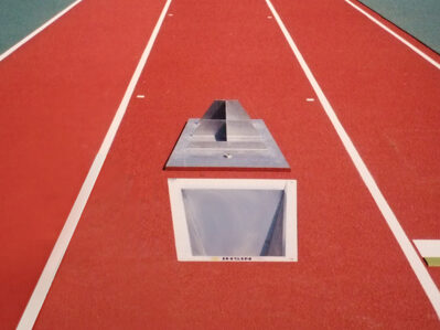 そのほか、助走路には棒高跳で使用する棒高ボックスも設置される場合があります。棒高ボックスや走幅跳の踏切板は、競技を行わない時には蓋をかけておきます。