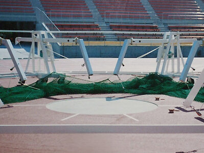 落下域は、砲丸投に関しては半円の全天候型舗装の中に設けられる例が多く、その場合、緑色スクリーニングスやアンツーカといったクレイ系の材料で舗装されます。