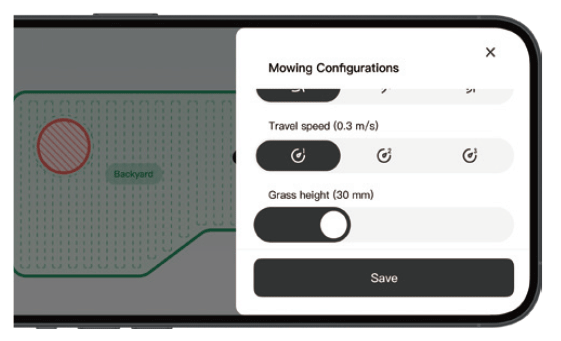 設定をカスタマイズすることで、芝刈りエリアに合わせた刈り高や作業スケジュールを調整することも可能。立ち入り禁止エリアも設定できるので、不用意な作業を避けることもできます。