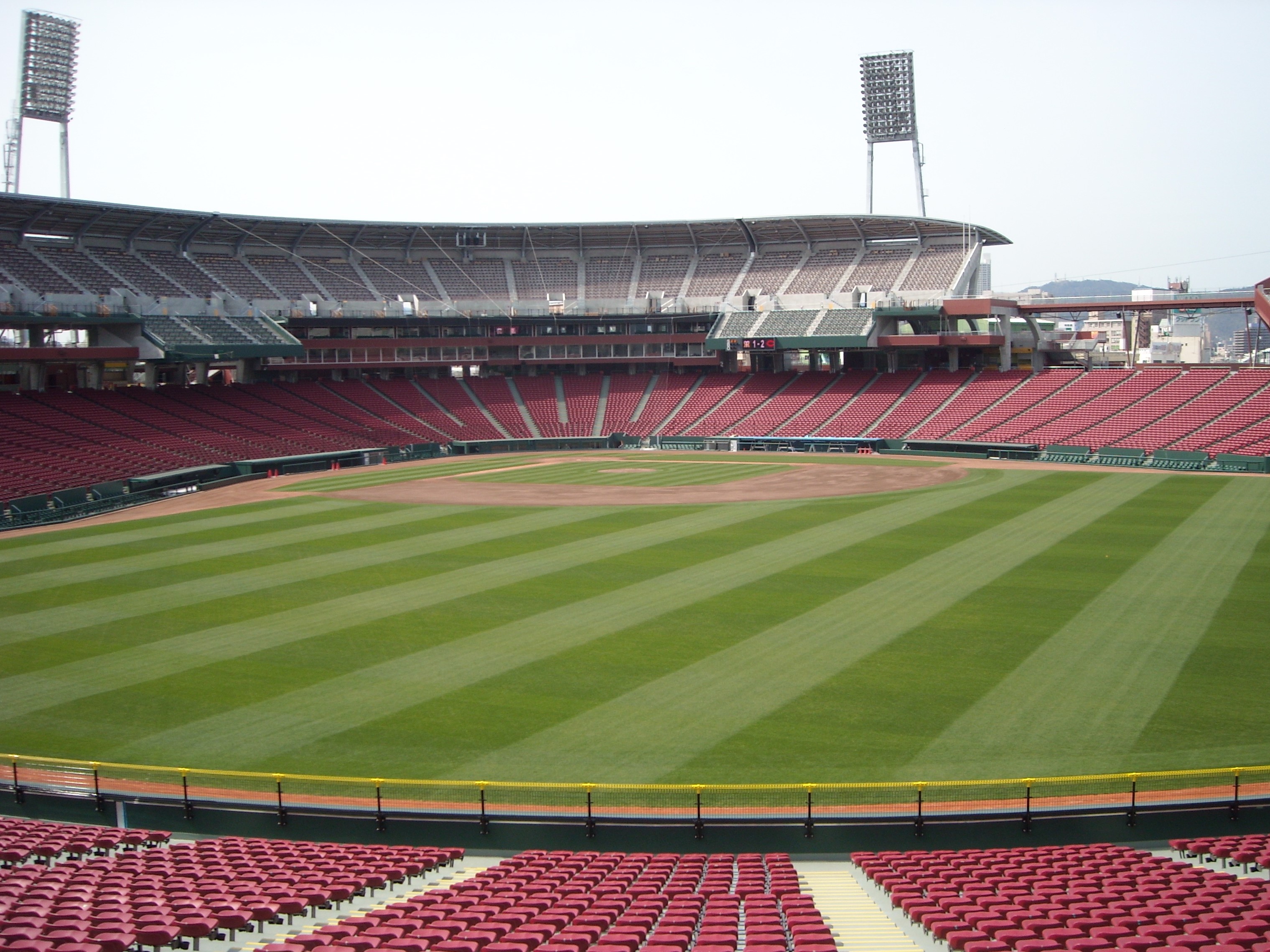 2009年4月にオープンした、広島東洋カープの新しい本拠地「マツダスタジアム広島」は、内外野天然芝舗装の野球場です。