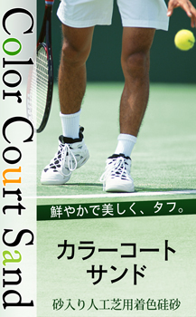 『カラーコートサンド』は、人工芝に充填する珪砂のうち、最表面の5mm程度に使用するのが標準のため、新設時に限らず、固結した充填材をほぐして、入れ替えをするような補修時にも、ご利用頂けます。