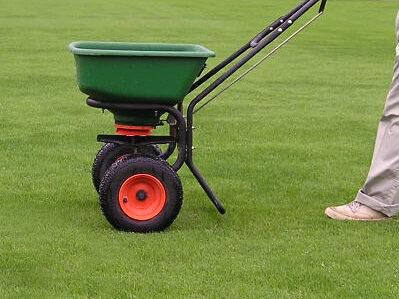 手押し式散布機による施肥