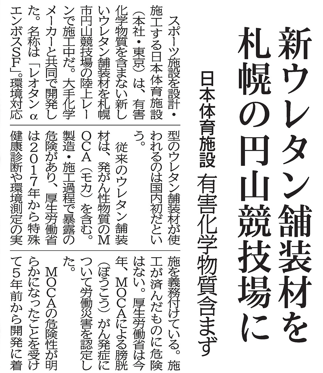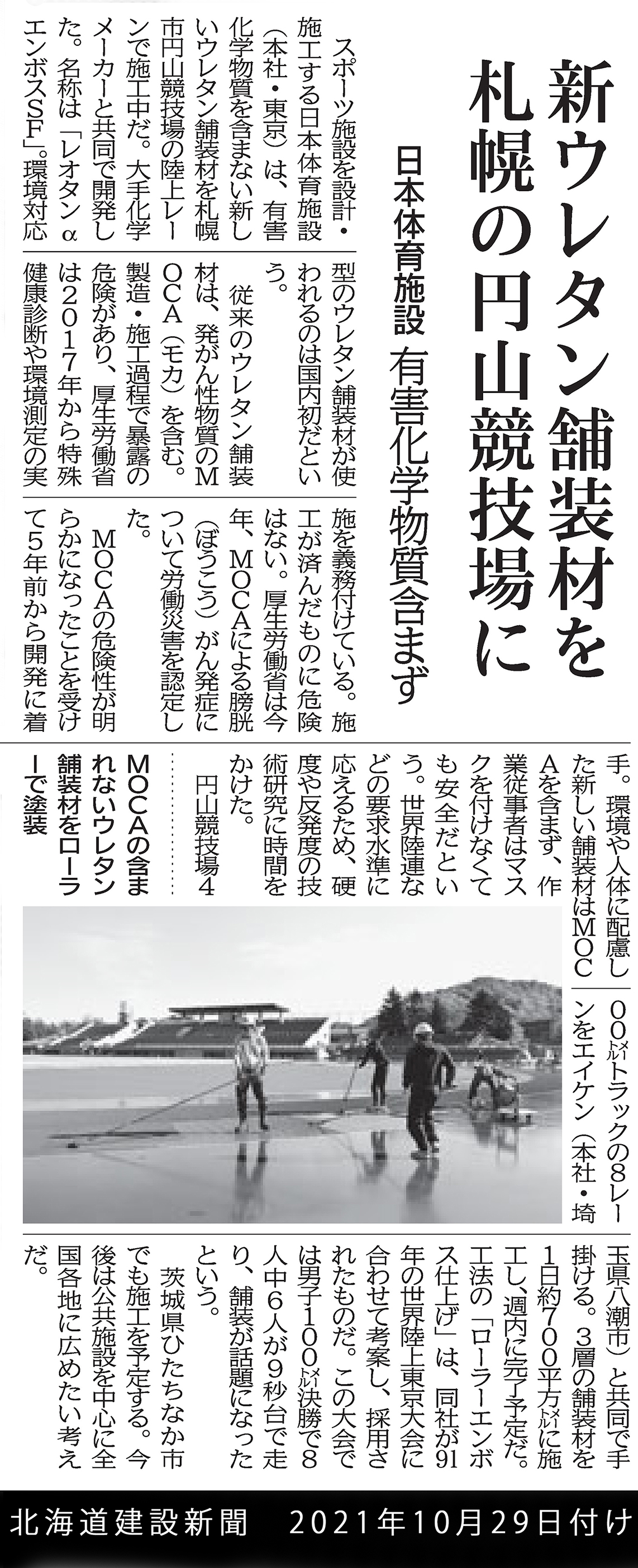 この取組が注目され、2021年10月29日の『北海道建設新聞』に、札幌市円山競技場での施工が掲載されました。