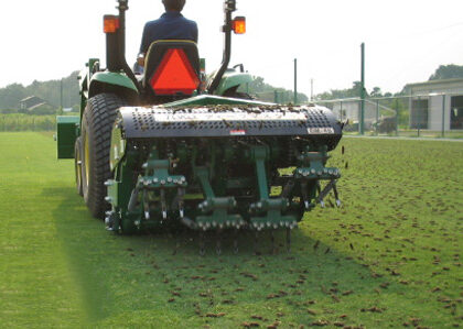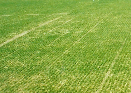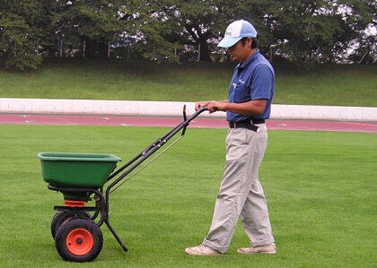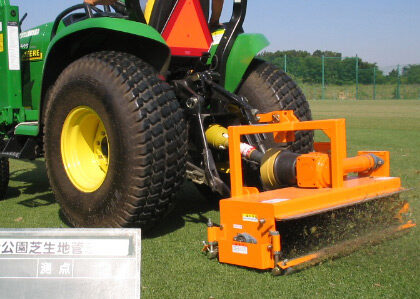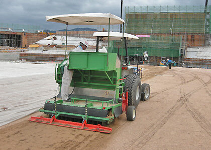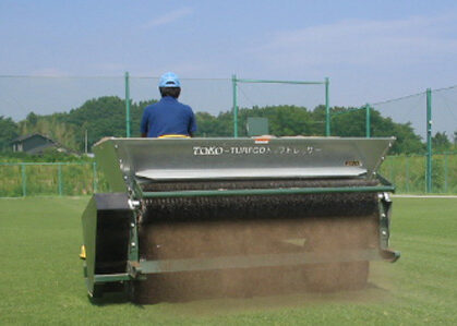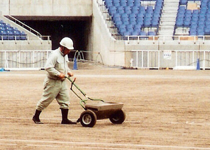 ソッドを利用した張り芝よりも、低コストで均一なターフを造成でき、完成後の美観も優れます。機械まき芝工法は、生育力の旺盛な「ティフトン」に特に適しています。