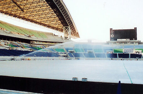 関東地方でも、寒地型芝生で常緑を保持している球技場もありますが、関東以西では、夏季は暖地型芝生で常緑を保持している施設が多く見られます。