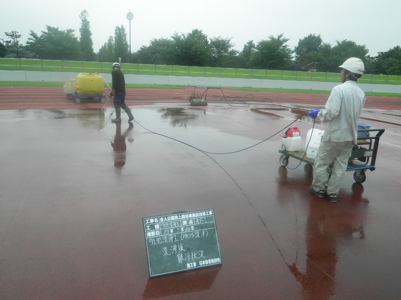 所在地:栃木県大田原市洗浄した舗装材:ウレタン舗装 |