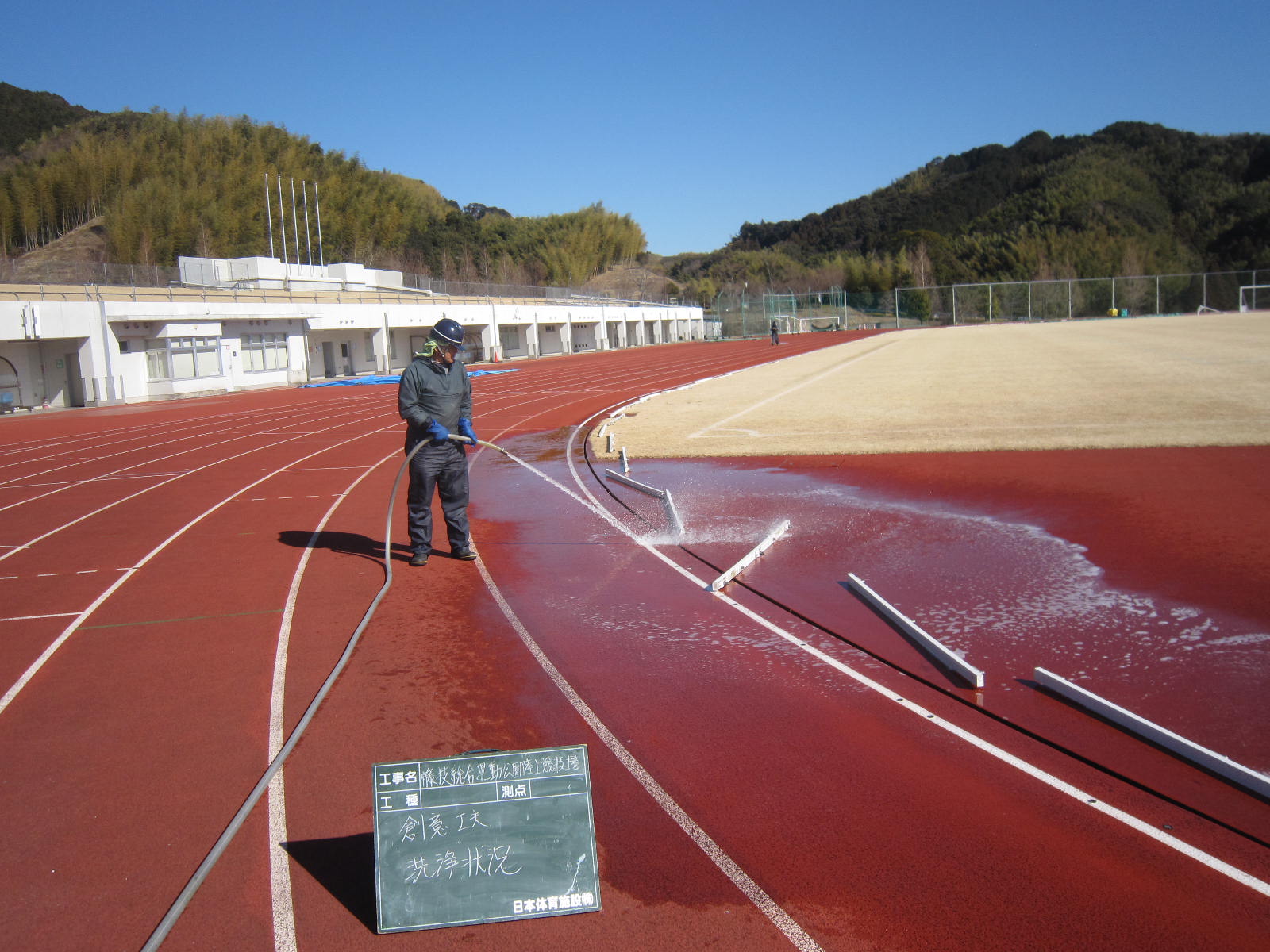 所在地:北海道網走市洗浄した舗装材:ウレタン舗装 |