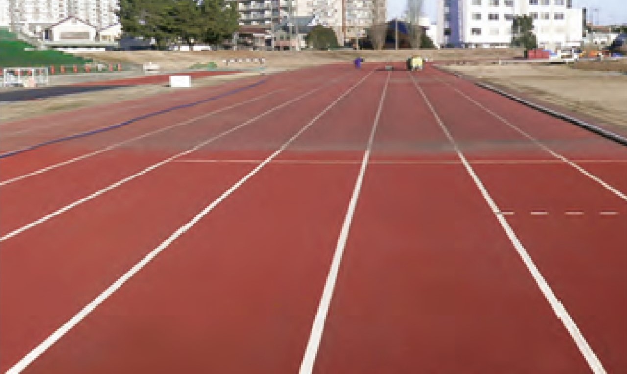 全天候型舗装の陸上トラックは少しずつ色がくすみ、汚れが目立つようになります。汚れがひどくなると、ラインが見えにくくなるなど競技場としての機能が低下します。また、 美観も損ねるので、利用者に快適な時間を提供することが難しくなります。しかし、改修工事をしてサーフェイスを一新する時期には至っていない…。という場合は、専門スタッフによるウレタン洗浄『MOS洗浄工法』をおすすめします。