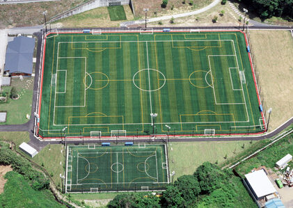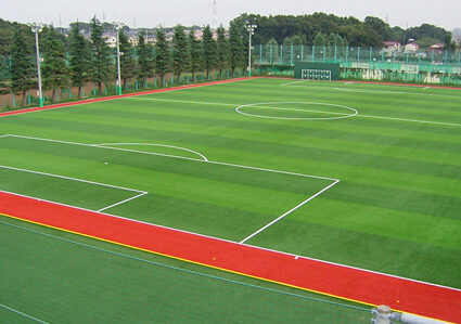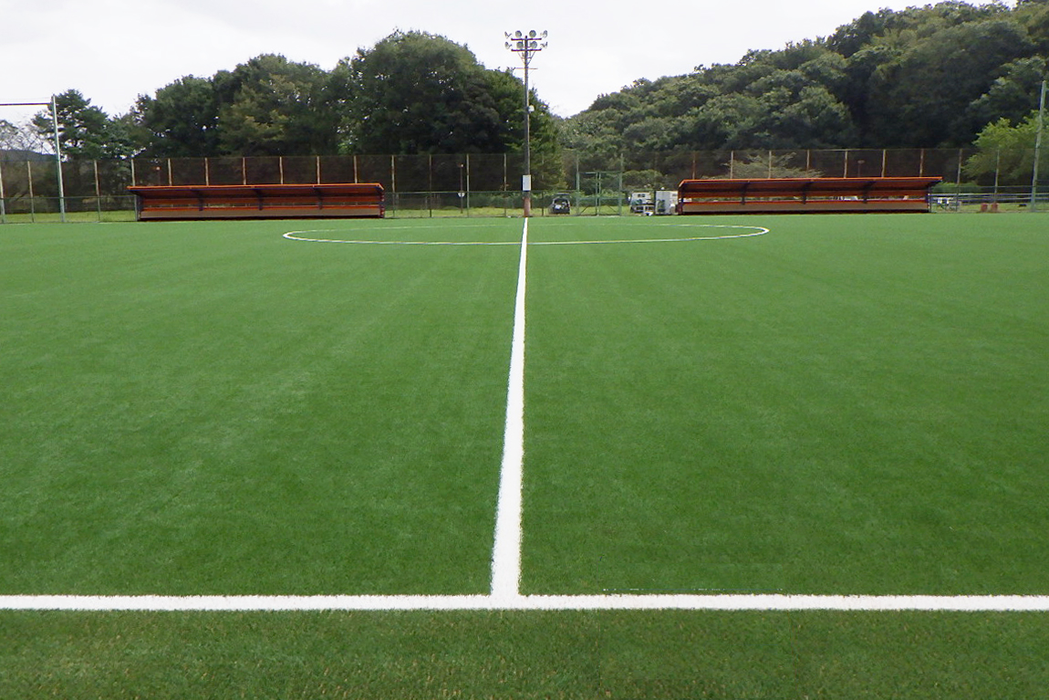 人工芝は天然芝より管理がしやすい等、選択される場面も多いサーフェイスです。日本体育施設では、プレイ体験にもすぐれた人工芝素材を用い、目的に沿った球技場建設をご提案しています。