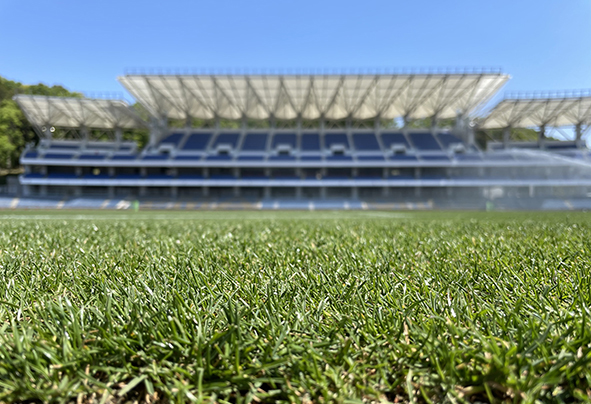 日本体育施設の『スポーツターフ(天然芝舗装)』についてご紹介。生きた芝の利用に必要な『寒地型・暖地型』の種別による施工計画や『ウインターオーバーシーディング』管理など、専門的かつ長期的なサポートを行います。
